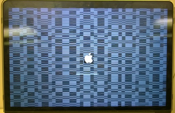 Le problème visible sur la dernière photo ne provient pas de l'écran mais de la carte graphique, se manifestant également lorsque le MacBook était connecté à un écran externe.